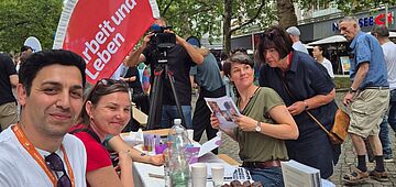 mehrTeam Dresden von ARBEIT UND LEBEN Sachsen zu Tisch beim Goldenen Reiter