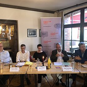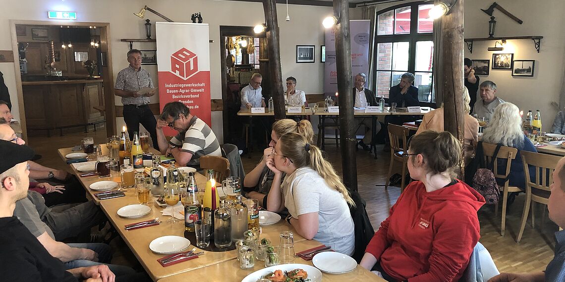 Am 3. Juni 2024 hatte "ARBEIT UND LEBEN Sachsen" e.V. gemeinsam mit dem Bezirksvorstand der IG BAU Dresden, interessierte Mitglieder und Öffentlichkeit zu einer Gesprächsrunde mit Bau-Politikern der vier demokratischen Landtagsfraktionen eingeladen.